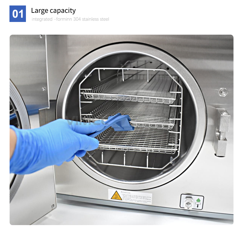 Описание: 1. Регулируемые ножки: отрегулируйте высоту передней части стерилизатора, чтобы предотвратить переливание конденсата. 2. Большая вместимость: доступны варианты 18/23 литра, цельная конструкция из нержавеющей стали марки 304. 3. Резервуар для воды: всегда используйте дистиллированну...