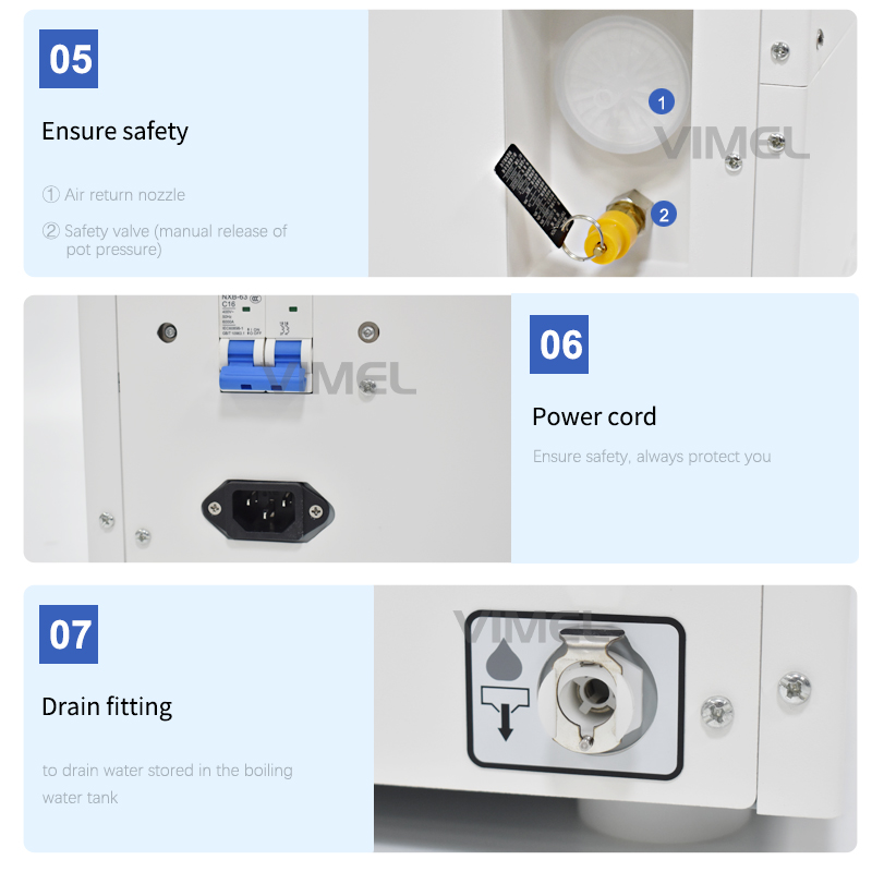 1. Регулируемые ножки: отрегулируйте высоту передней части стерилизатора, чтобы предотвратить переливание конденсата.